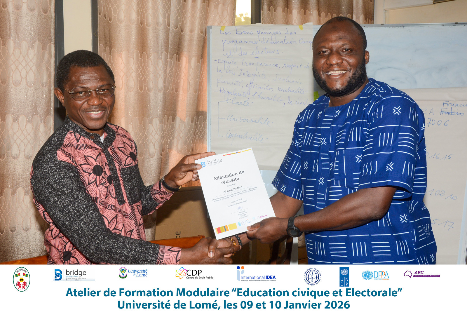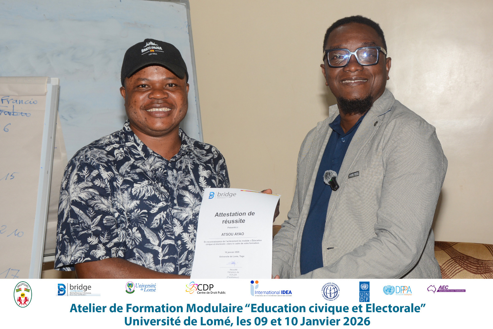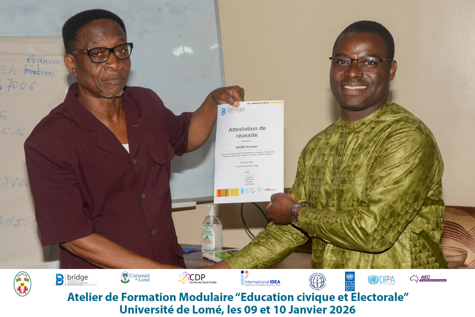 Les 09 et 10 janvier 2026, l’Université de Lomé, à travers son Centre de Droit Public, a organisé un atelier modulaire BRIDGE qui a marqué la clôture de la formation continue en administration électorale de la promotion 2025. Cette formation, financée en partie par le Fonds National d’Apprentissage, de Formation et de Perfectionnement Professionnels (FNAFPP), s’est déroulée sur plusieurs mois et a mobilisé des enseignants-chercheurs, des praticiens ainsi que des facilitateurs BRIDGE.