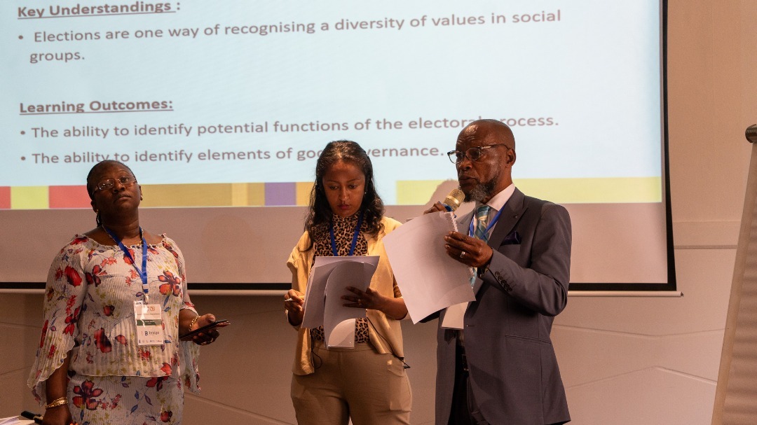 The facilitation team was led by Rindai Chipfunde Vava, supported by facilitators from Ibrahima A. Niang of UNDP Senegal, Karine Kakasi from the African Union, and Vera Muring of International IDEA. Together, this dynamic team leveraged their facilitation expertise to cultivate an inclusive and engaging learning environment, one that fostered meaningful peer exchange learning among EMBs.