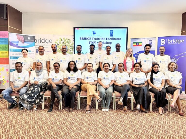 The National Election Board of Ethiopia (NEBE), with support from UNDP’s SEEDS2 Programme, hosted a two-week BRIDGE Train the Facilitator (TtF) workshop in Addis Ababa. The workshop brought together 20 representatives from NEBE – nine male and eleven female participants – to develop a cadre of skilled facilitators equipped to deliver electoral capacity-building programmes across the country.